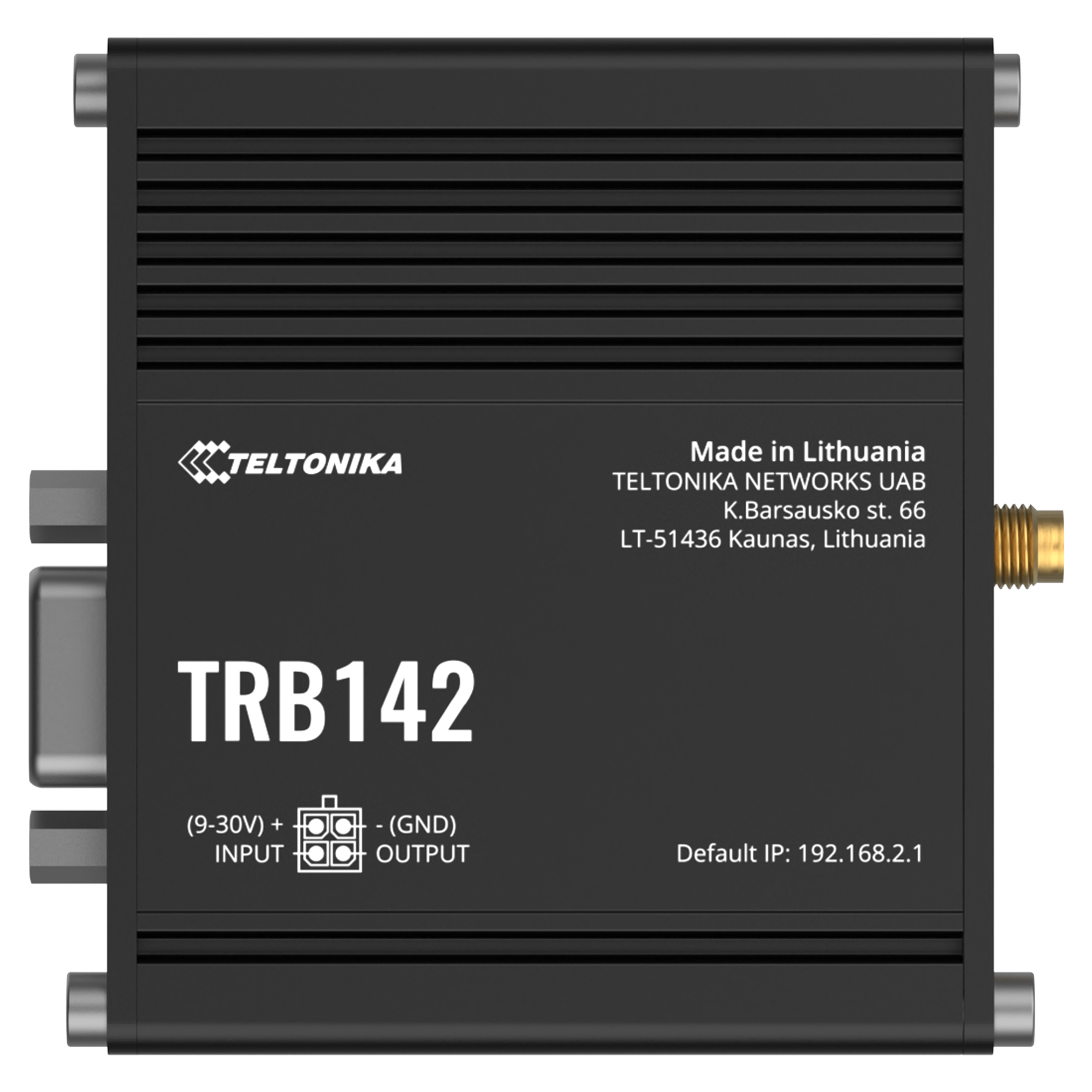 2 x Configurable I/O pins on 4 pin power connector (I/O not available in TRB142*2****)